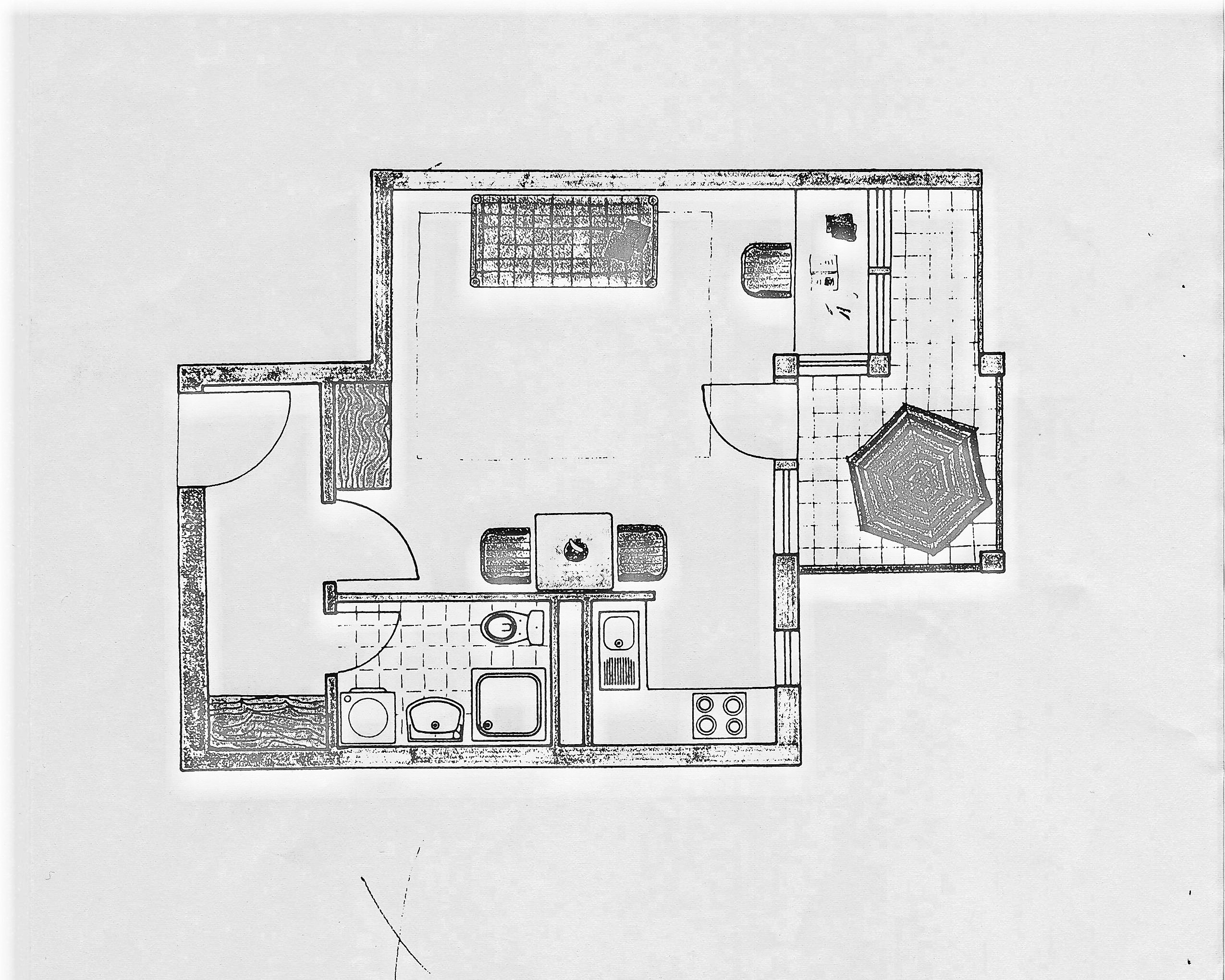 Die Wohnfläche verteilt sich über ein Wohnzimmer, ein Duschbad sowie eine Kochnische.